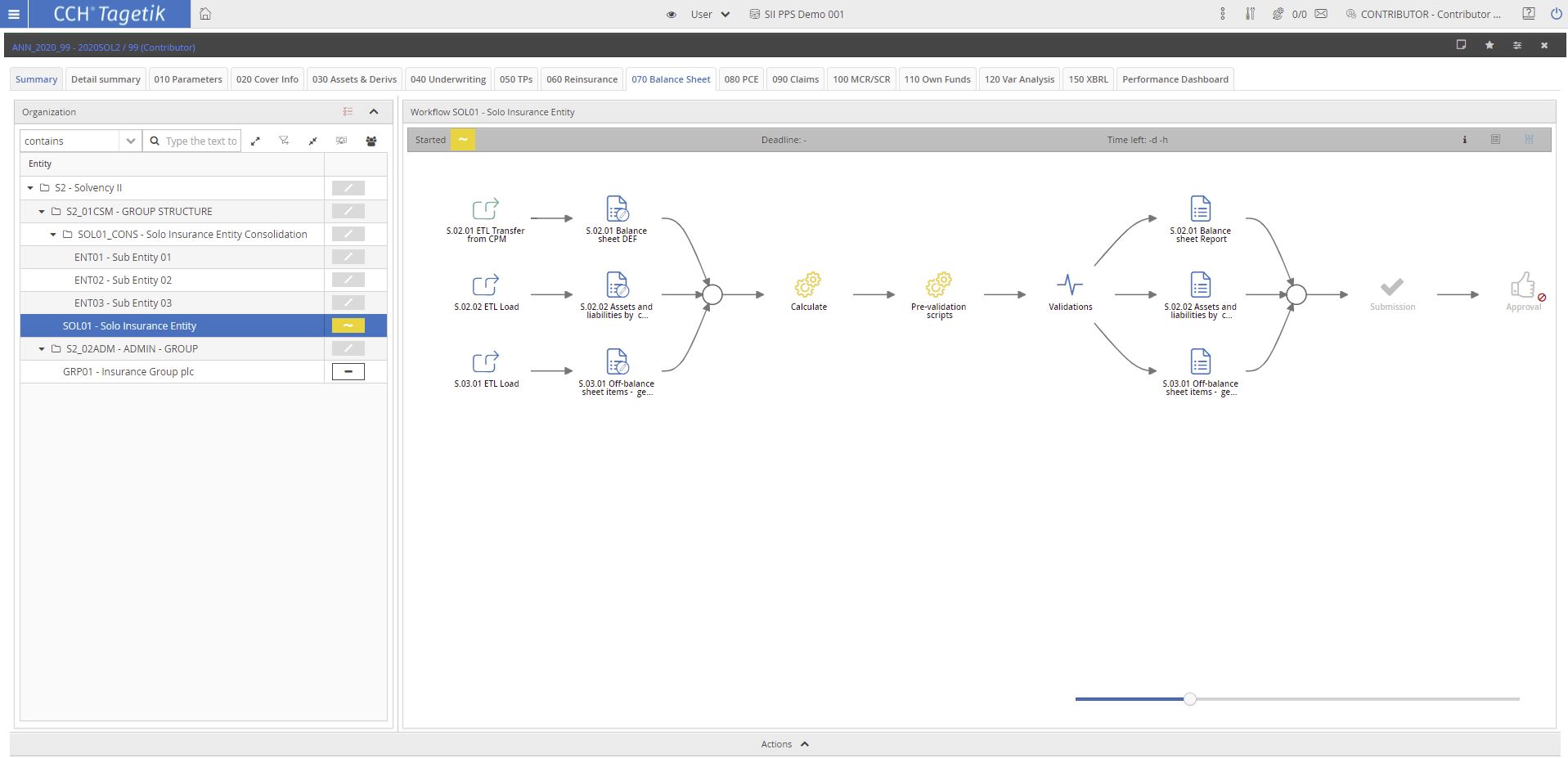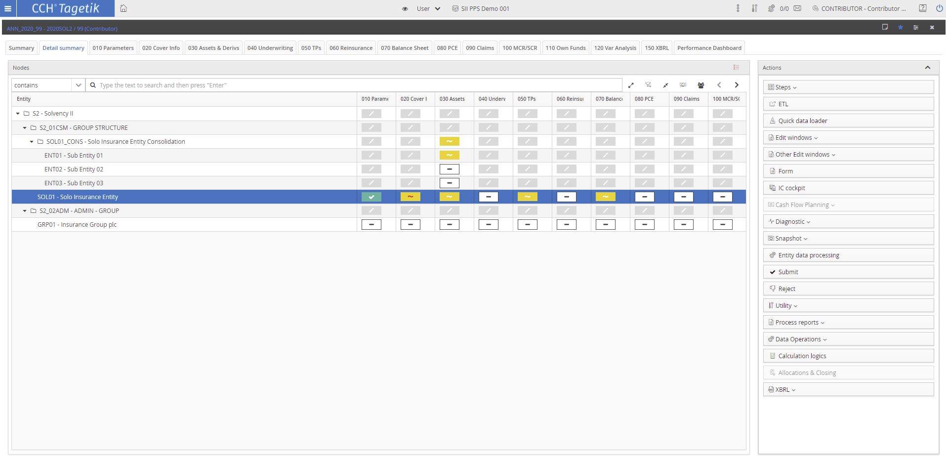CCH Tagetik caters for EIOPA, various jurisdictional requirements, and even Lloyd’s Solvency Reporting. Information can be prepared at a sub-entity or solo level and consolidated up to a group position.