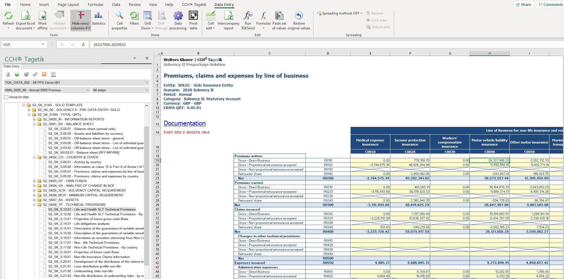 The PPS solution includes the full range of QRT and NST reports, formatted and notated according to the regulatory specifications. In addition, CCH Tagetik provides a range of other useful reports, including validation reports and QRT technical specifications. Users can create their own reports using CCH Tagetik’s powerful Excel-integrated report writer.