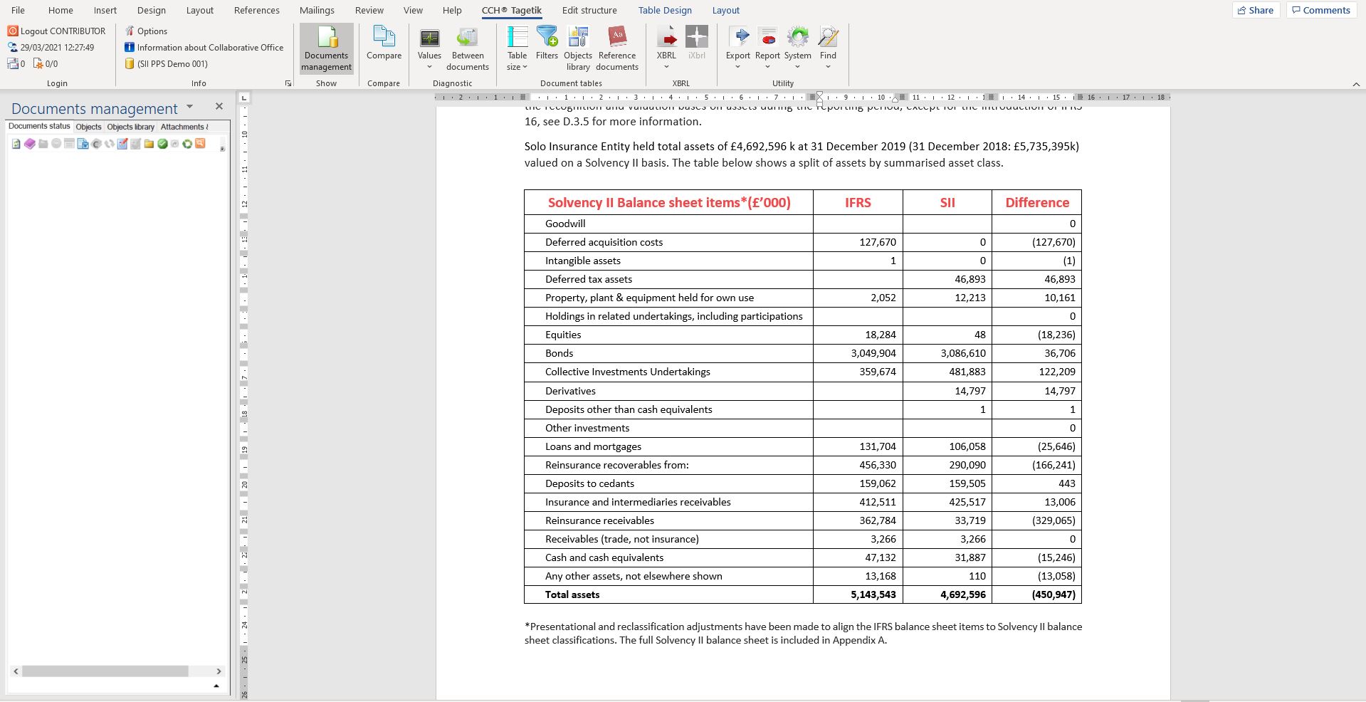 CCH Tagetik’s Collaborative Office provides a powerful Word-integrated disclosure management tool for narrative reporting such as the SFCR. This extension allows businesses to develop reports using a templated approach including concurrent multi-user collaboration.